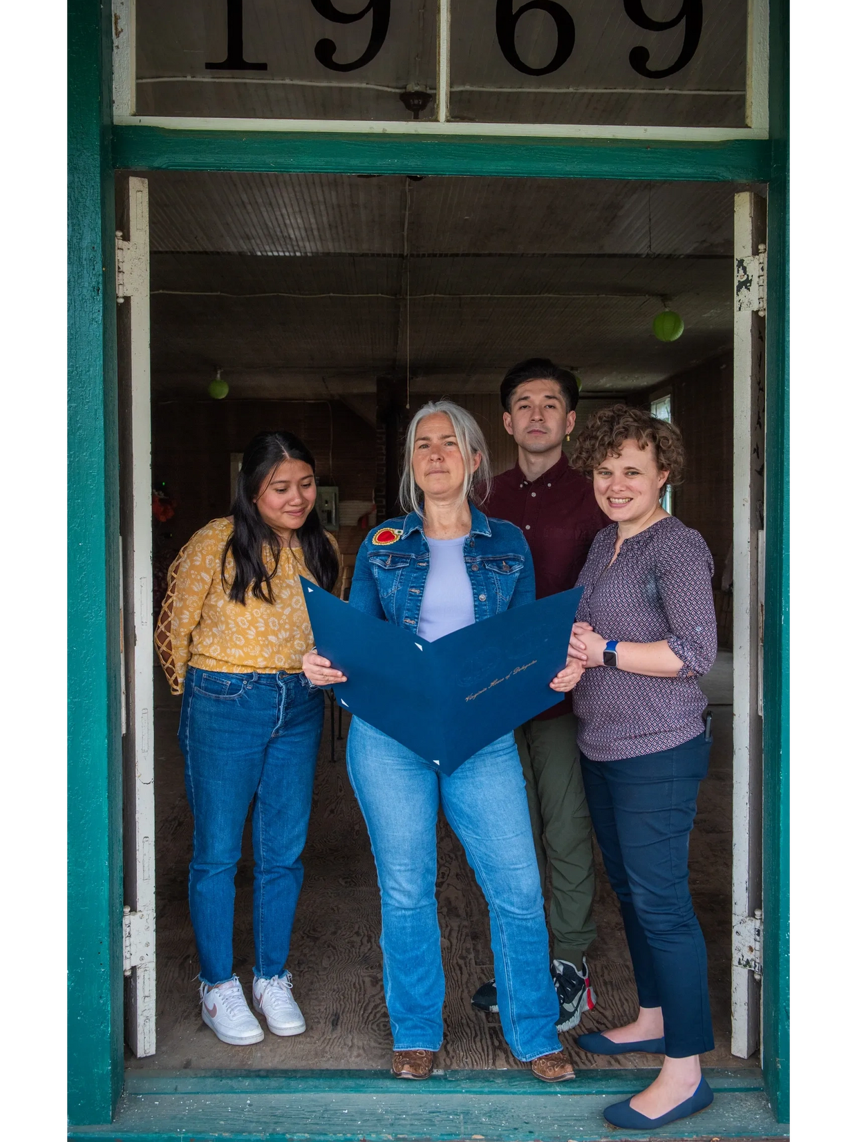 Pictured left to right: The Central Virginia Farm Workers Initiative Jasmin Lopez, Vanessa Hale, Wilson Tosta and Del. Sally Hudson are pictured in the old Odd Fellows Hall in Massies Mill, the home of "la Iniciativa". Hudson was visiting to present House Resolution No. 469 for the nonprofit's work with seasonal farm workers.